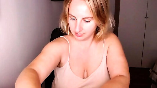 Plumper with huge saggy bosoms masturbating on web cam and displaying wooly coochie
