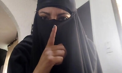 Big-chested Arab Milf in hijab plays with her vag till she cums - Solo