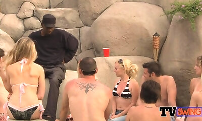 Sex game with his blond gf and an old couple