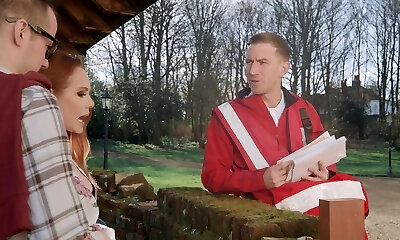 Ginger-haired MILF Ella Hughes seduced a mail dude for a quickie. HD