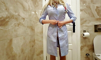 nurse in the hospital rest room masturbates and makes a movie on the phone for her subscribers