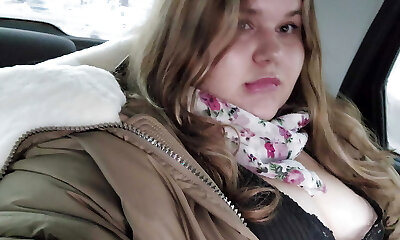Chubby Cutie with Good-sized Tits Masturbates in a Cab in the Backseat