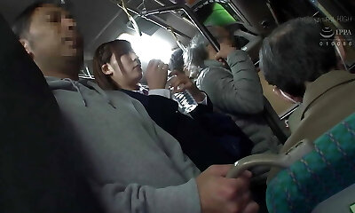 Busty, Asian brunette is getting molested in a public buss, but she loves it a pile
