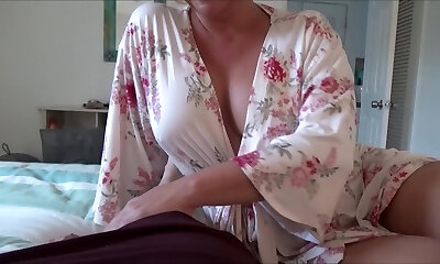 Mature Stepmom helps her son-in-law with a broken leg relax