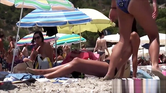 Outdoor sex on a beach ends with a massive cumshot on ass