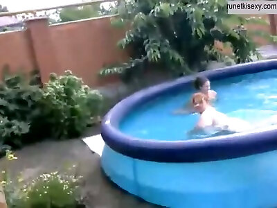 Horny lesbians with big ass take advantage of home alone to lick their pussies in the pool - Porn in Spanish