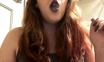 Sexy Chubby Goth Teen Smoking Crimson Cork Tip 100 Cigarette in Purple Lipstick