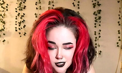 Young Goth Puts on Dark Red Lipstick and Plays with Huge Puffy Puffies