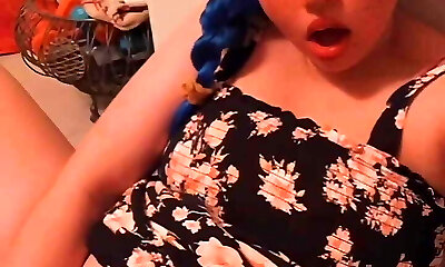 Hot blue haired goth girl gets pounded by a huge rod and moans in pleasure