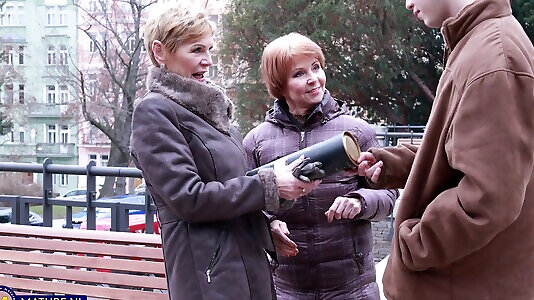 परिपक्व सुनहरे बालों वाली और उनके पड़ोसी के साथ आउटडोर skye avery gold oil पुरूष त्रिगुट