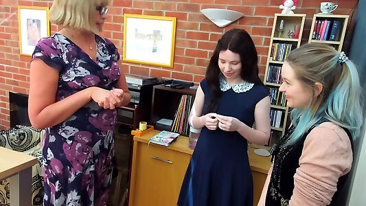 dwie dziwki uczennice i ich lesbijki trener zabawy z dildo w szatni