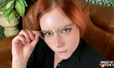 Sexy MILF in glasses with massive melons instructs how to jerk off!
