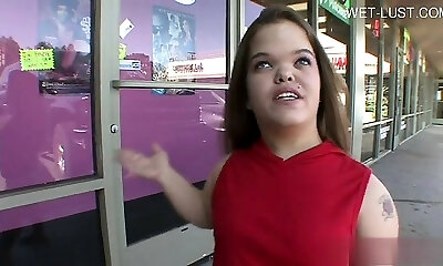 Randy Brunette Teenie Enjoying A Very Fat Cock
